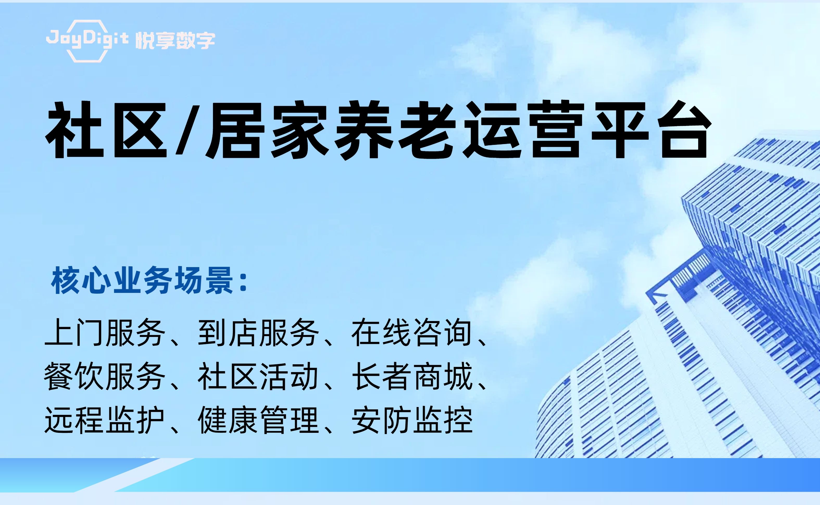 北京悅享數字科技有限公司(JoyDigit?,簡稱悅享數字?)作為養(yǎng)老行業(yè)數字化轉型的引領者,以“數字驅動健康?,智慧賦能養(yǎng)老?”為愿景,以iSpeed作為養(yǎng)老行業(yè)數字化轉型的標準,通過融合大數據、人工智能、物聯(lián)網、區(qū)塊鏈和移動互聯(lián)等創(chuàng)新技術,打造了領先的數字化養(yǎng)老解決方案-悅享養(yǎng)老數字化平臺(JoyDigit NexSight Platform),端到端覆蓋了數字化渠道與銷售、業(yè)務流程標準化與智...